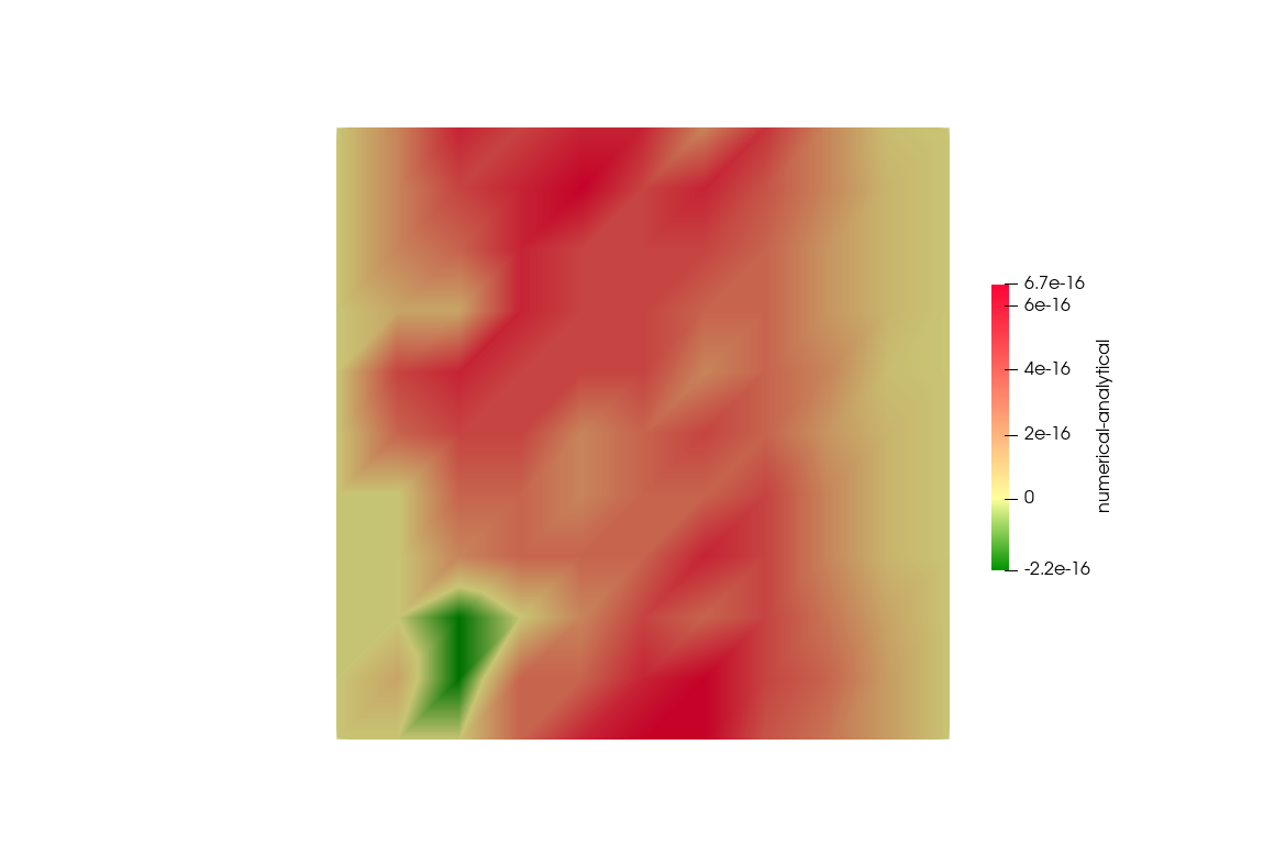 The difference between the computed solution and the analytical solution is in