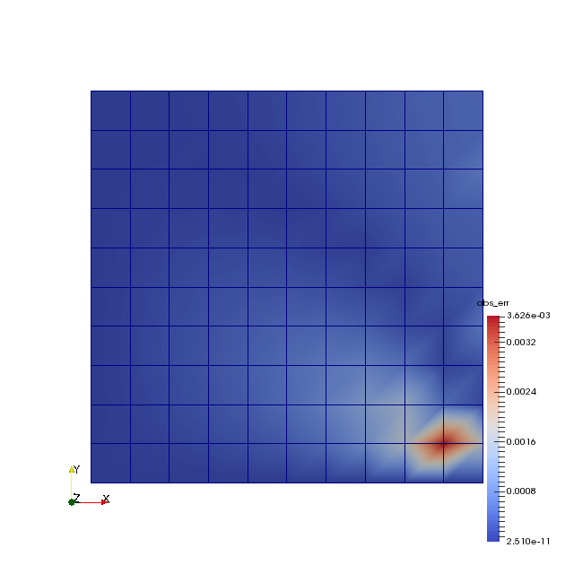 $$ A_k = 2 \Big/ \Big(C_k^2 \cosh\big(C_k\big)\Big). $$The main project file is square_1e2_neumann.prj. It describes the processes to be solved and the related process variables together with their initial and boundary conditions. It also references the mesh and geometrical objects defined on the mesh.