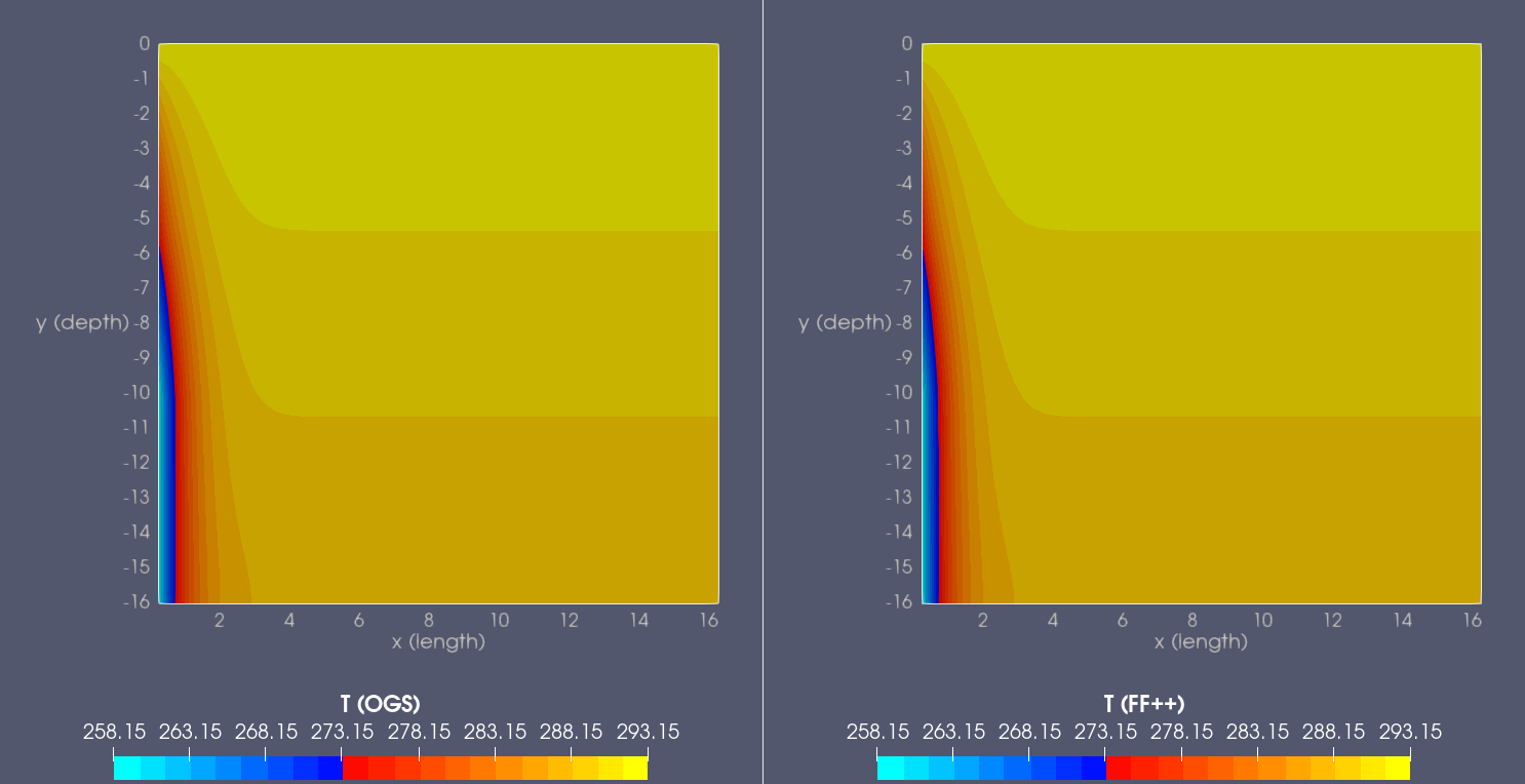 Simulations are performed using both our OpenGeoSys platform and the FreeFem++ open source finite element code (in the following, simply termed OGS and FF++, respectively), thus enabling cross-verification of the numerical codes.
