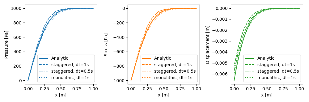with fixed stress rate over time step, the monolithic scheme, and analytic