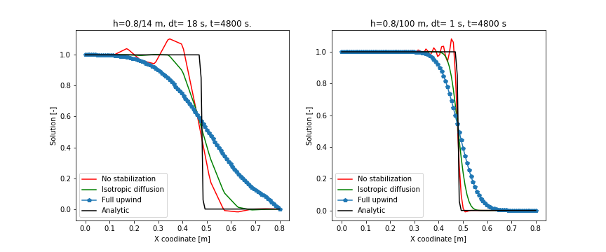 From the figures we can see that the full upwind scheme adds more diffusion than the isotropic diffusion scheme does.