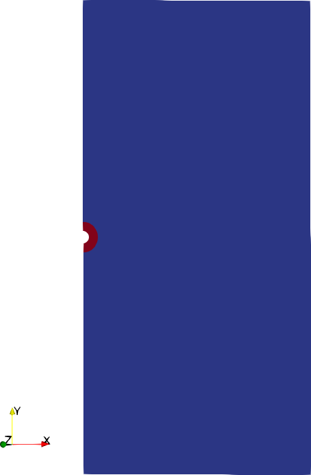 In the above figure, the domain in the annulus sector represents the sealing material, bentonite. A heat power, which is generated by the nuclear waste with one million year variation, is applied onto the inner arc of the annulus sector. On the top boundary, the boundary conditions are $p=4.3 ⋅ 10^6\ \mathrm{Pa}, T=294\ \mathrm{K}$. While on the bottom boundary, the boundary conditions are set as $p=4.7 ⋅ 10^6\ \mathrm{Pa}, T=319\ \mathrm{K}$. The initial conditions are given as $p=4.7 ⋅ 10^6\ \mathrm{Pa}, T=298\ \mathrm{K}$.