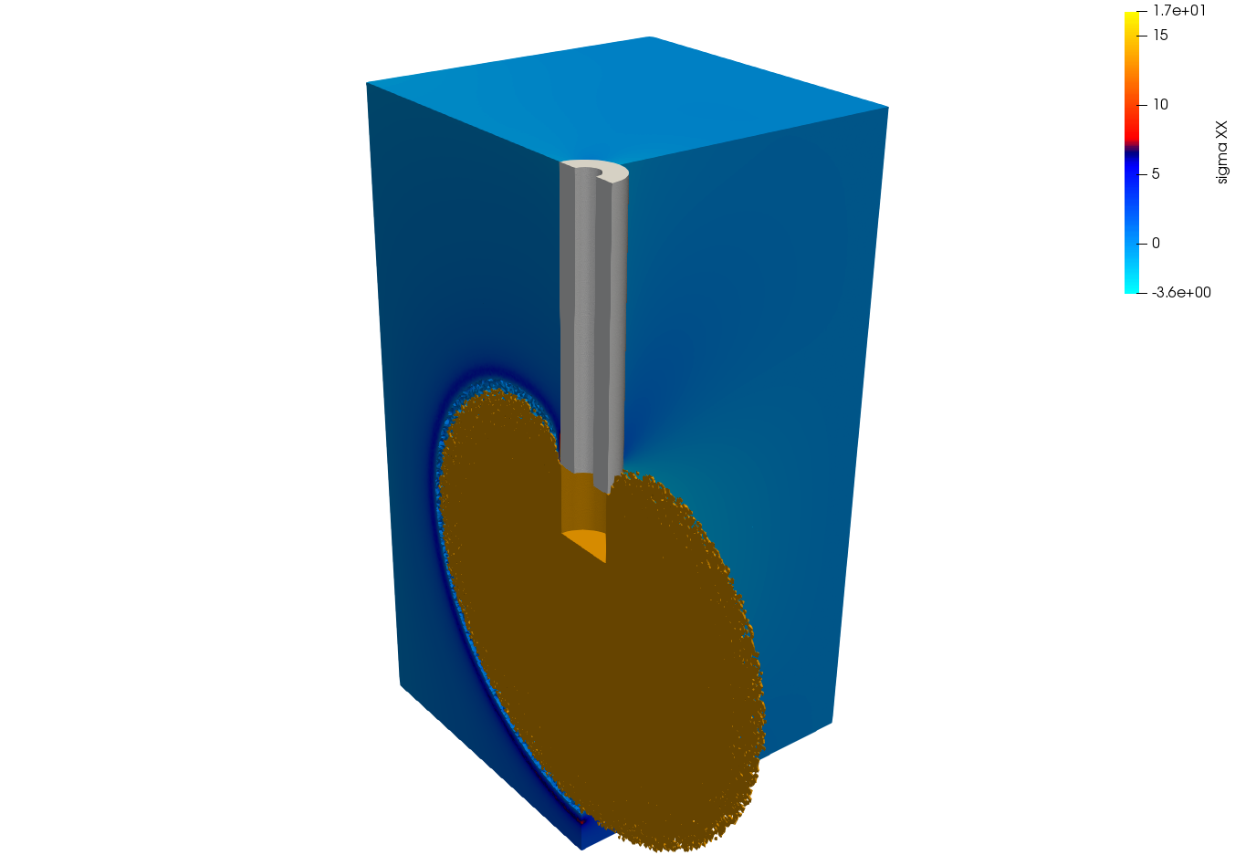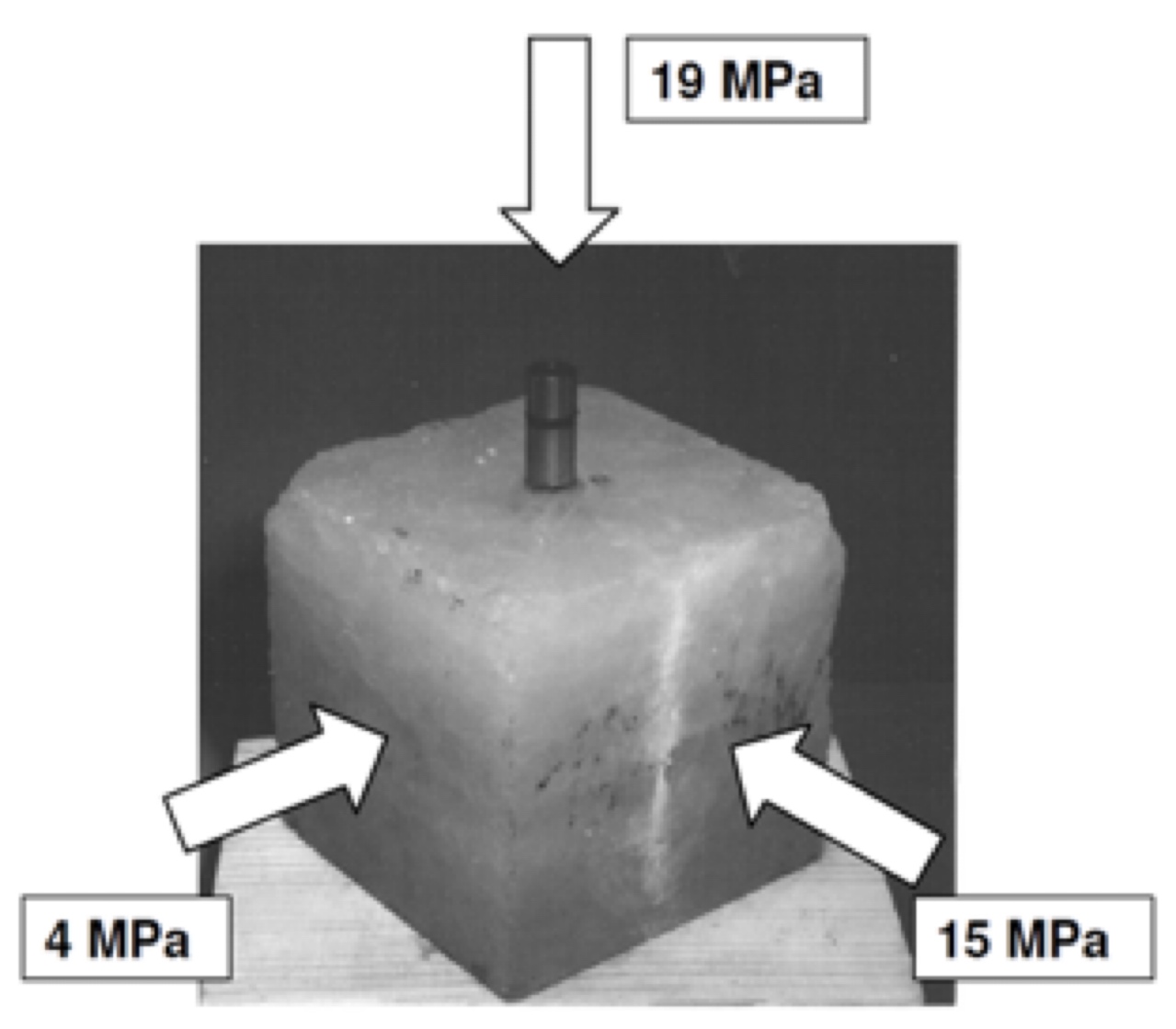 We simulate two different fluid percolation experiments performed on rock salt samples with a true tri-axial loading system as described in this PDF. The experiments were performed under two different stress configurations as below.