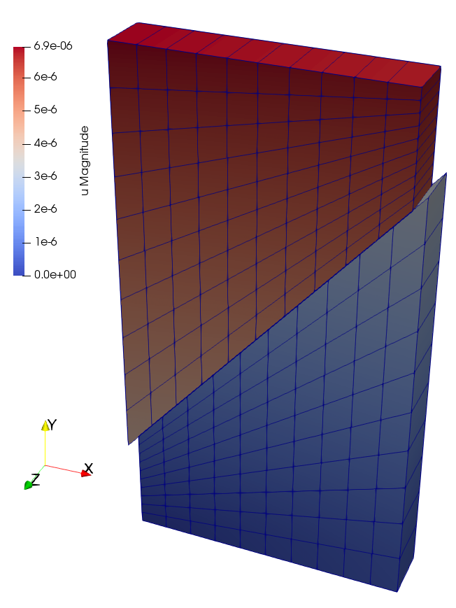 We solve a linear elastic small deformation problem with a pre-existing fracture using the lower-dimensional interface element (LIE) approach.