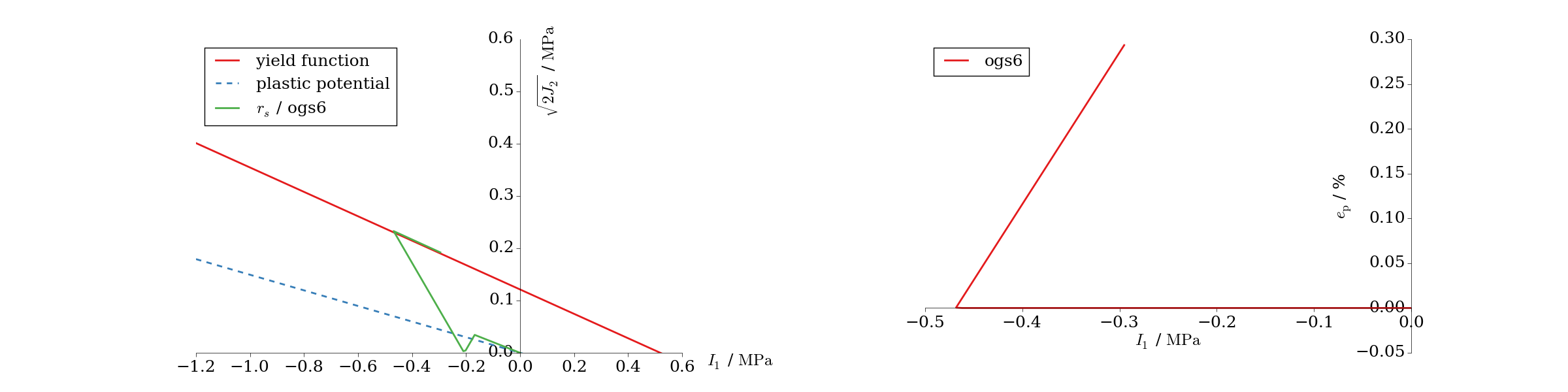 The Ehlers material model can be reduced to the well-known criteria, such as the Drucker-Prager and von Mises. Here, we provide a Drucker-Prager model test as an additional verification of the Ehlers material model. The interested reader is referred to the document attached in the standard Ehlers material model test for obtaining more details.